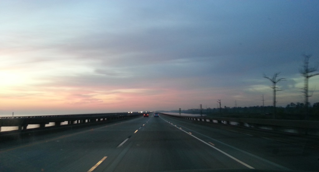 I’m glad I started feeling better again just in time for this race. The CCC10 is a huge race. Last year they had over 16,000 participants. This year, they ended up having about 1,500 more. That’s a lot of people. With the race being at 8am on a Saturday, I opted not to stay in NOLA the night before and just drive in from BTR the morning of. That meant being up early and making the 70 minute drive down, but with Saturday morning traffic being minimal, It really wasn’t a problem. In the deal, I got to see a spectacular sunrise driving into Kenner. I don’t think I’ve ever see such a large and red sun. It was easy to look at and it was huge. It was rather brilliant. By the time I got to the 610 split though, that soft red glow turned into a piercing yellow blinding light.