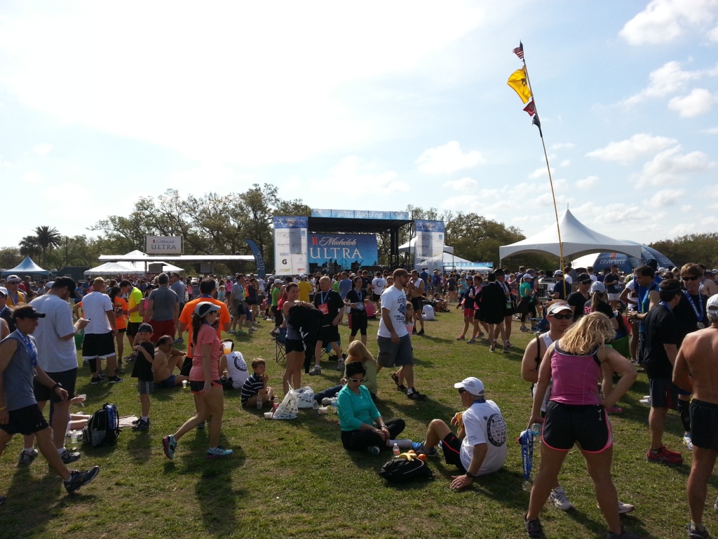 Now after getting out of the end debacle with some water and the medal, you were able to continue to the festival area where you got powerade and then all sorts of goodies along with being treated to live music from Papa Grows Funk. The festival area had the feel of a mini Jazz Fest. It was great. People were laid out on the lawn and on the track, with their coolers and attached totums. They didn’t have as much food selection as I had read they would but it wasn’t a huge deal to me. I was happy with the jambalaya. They had Subway as well but I didn’t feel like subway. Cajun food is perfect for post race meals. There were plenty of options for drinks, including more alcohol if you preferred. There were also various booths with items such as race posters, pictures, sunglasses, health and fitness and others. The music couldn’t be beat. People were still finishing the race. Who knows when they started or crossed the start line, but I did notice that some of the latest chip times were over 2:45:00. I don’t believe I saw any over 3 hours unless those were the two that got DQ’d. I imagine they got lost between Mile 3 and 4 and the beer soaking booth.
