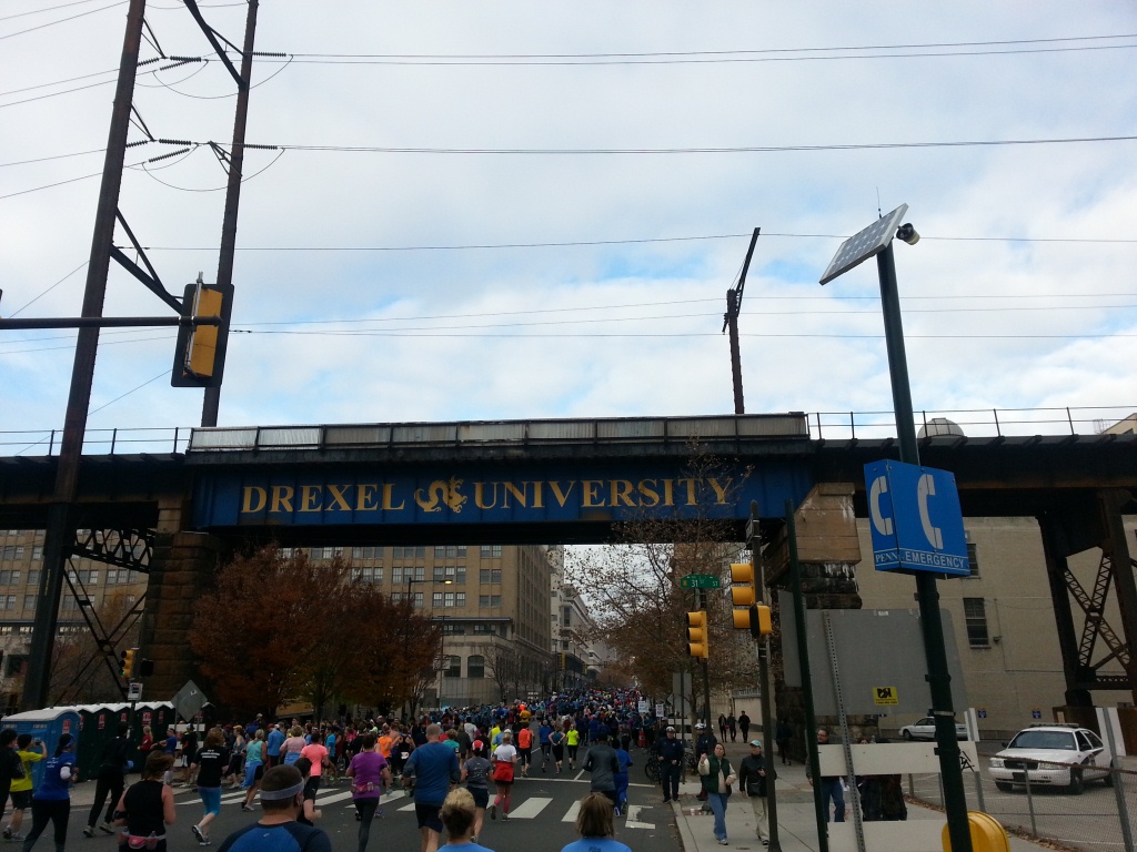 Mile 7: The crowds start to loosen up again as we head over the Schuylkill River towards Drexel University or University City. I’m still running though and actually ran my fastest mile at this point which was nearly right at a 10min/mi. Looking back at my GPS and through that previous mile through the crowds, I ran my fastest period with multiple sprints at a 6min/mi. Those power ups really did help. But that push was starting to catch up with me. There was some saying in Philly with this company called WaWa which I still don’t know who they are. It’s just catchy to me because their slogan is ‘You gotta have a wawa’ and instantly I think of little kindergarteners trying to say ‘Water’. I gotta have a wawa!