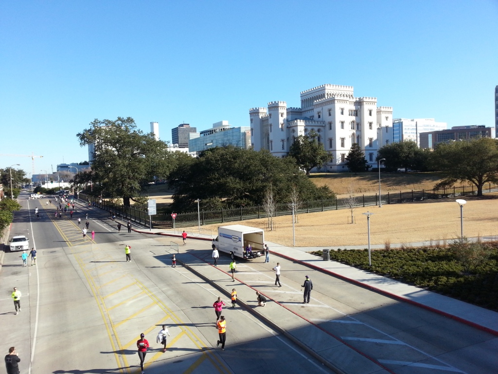 For one, the start is right next to the train tracks downtown. Granted, it won’t prevent a race, but there were so many people crowded around and with young kids, and all were playing around on the tracks because it’s literally about 50 feet from the road and start line. If a train had decided to come by, what would people have done? You assumed they’d move out of the way, but we’re talking 1500 people here and a ton of children. Certainly a catastrophe waiting to happen if you ask me. I don’t know of any large races in the region that start and finish in such an area. The course also goes over another set of railroad tracks along a bridge on North Blvd. It’s an interesting hill. Honestly, this shouldn’t be a huge deal because it’s insignificant, but it’s easy to forget that this is a very flat geographical area and most people running locally have never trained for any hills ever. I heard a lot of complaints about it. Another odd issue, there wasn’t much at the start/finish line. Everything was set up inside the Atrium about a block away. So it felt weird starting and then finishing with little support waiting right at the finish line. If you didn’t know that it was in the Atrium, you would have walked away upset. One more issue, and my biggest honestly but still petty, is that because this race added a 15K along with the 10K and they didn’t do a great job with drawing up a good route, they actually ended up blocking most of the downtown traffic, especially River Road traffic and anything west of 4th Street. They also kept many streets closed entirely even for the slowest of runners and I can say that because I finished my 10K, went to the Atrium for over 30 minutes, walked another 20 to my car and left and the routes were still closed. That’s a long time to be run/walking a 15K. So it made it an issue for me to leave since I decided to park within this boundary of closure that I didn’t really know about. If I had known, I would have parked elsewhere. So my ultimate suggestion honestly is to move the start/finish up to around Town Square on North Blvd (away from the downtown tracks), then route the 15K more around the lakes of LSU or LSU’s campus itself and not up 4th Street and around the Capitol barracks, that way all of downtown isn’t blocked. That should kill two birds with one stone if you ask me.