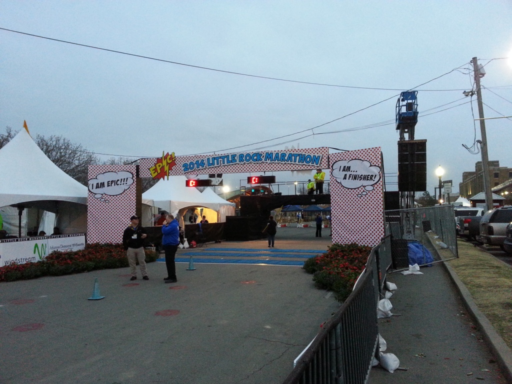 It would be easy to say that this race was an Epic failure in that many marathoners didn’t get to complete the entire course or finish with a marathon time, but I feel that the race directors did the best that they could given the circumstances. Should the race have been run in the first place? Hard to say. It wasn’t the worst conditions known to man, but it was the worst conditions known to many southerners, plus there was that threat of ice and even thunderstorms beforehand. So I guess in terms of safety, perhaps it could have been canceled. But then I wouldn’t have this amazing story to tell you. I think one thing is just about certain; the weather can’t be any worse for next years Little Rock Marathon. 🙂