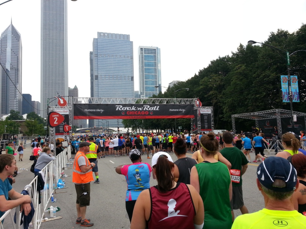 It was about six blocks from my hotel near the Sears Tower (I still can’t get used to saying ‘Willis Tower’. They aren’t even the main tenants right? Isn’t it United Airlines now? Maybe they should call it the United Airlines Tower.) I do enjoy the sight of watching hundreds upon hundreds of runners merging together from various blocks of downtown at 5:30am into one steady stream heading to the starting line. It’s a pretty exciting sight. I saw it in Philly for the first time and it was just an awesome feeling. Everyone coming from the Loop area was heading towards Grant Park where there were some 37 corrals. At first this seemed pretty ridiculous. Why 37? It would take forever to get through the start line. But they weren’t very large corrals and they lined them up to start about every minute or so after releasing the first few, so it really didn’t take that long. I think it ended up taking me about 40 minutes which is about what I expected. I was in corral 30. Yep, slow time for sure. Haha. And the weather really was great, but I did notice a considerable rise in the humidity between Saturday and Sunday morning.