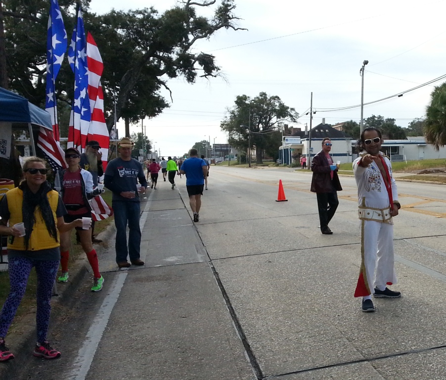 The race itself didn’t have many thousands of runners like some, but it wasn’t small either. You could tell most of the community was involved in this race and there was a huge military presence as well with the Air Force base being nearby. There were several groups of servicemen running/jogging with full gear. There were many volunteers along the roads from the area installations as well. And everyone was so supportive, from the runners to the volunteers to the spectators. I saw many more spectators along this urban route than I did in New Orleans, but perhaps the cold weather kept the cajuns indoors. This race also had a drone flying over, which seems to have gotten real popular now. The MC said that there was supposed to be a canon fire at the start, so I started to hold my ears a bit just in case, but I never heard the canon which was fine by me.