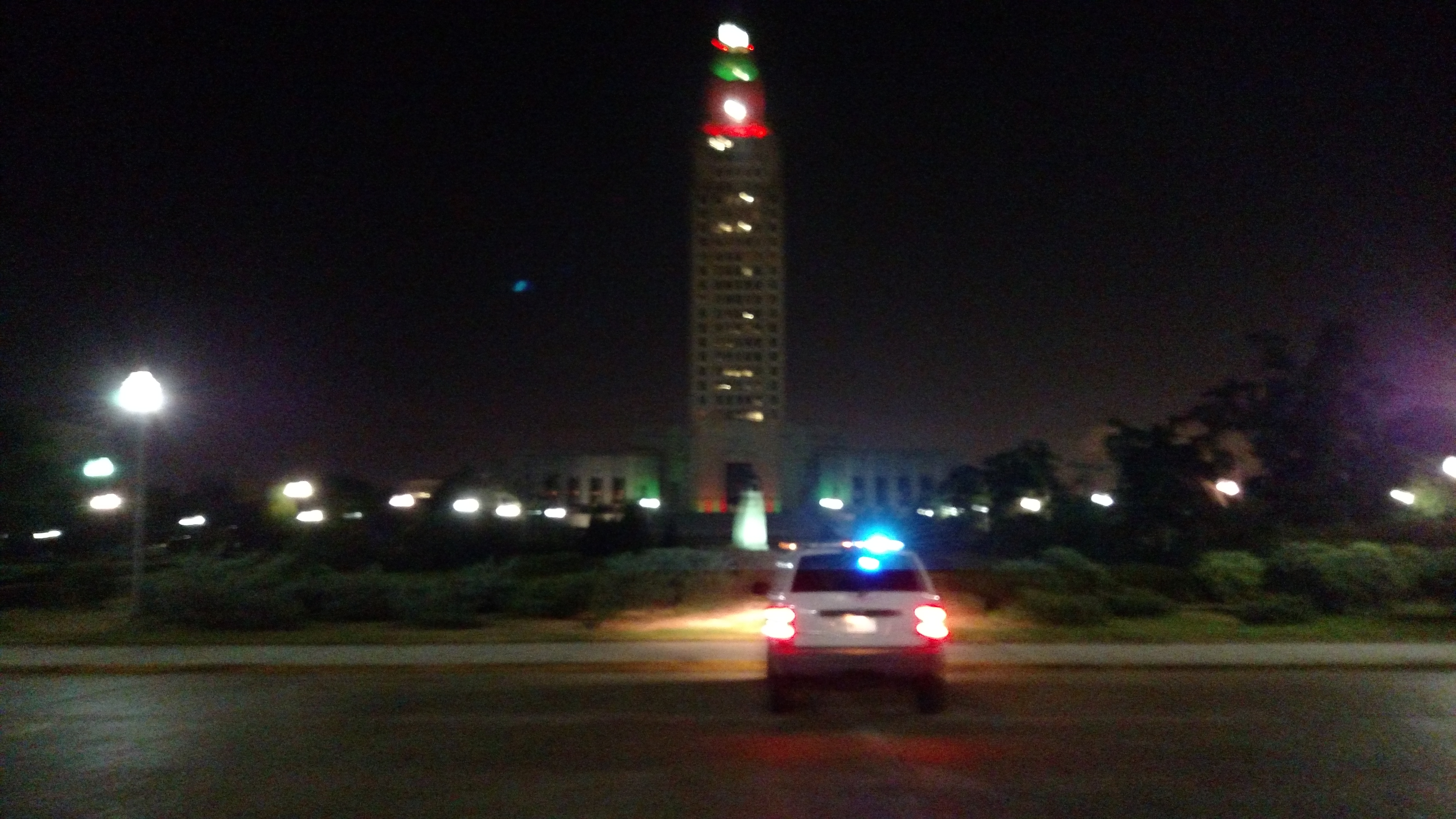 The state capitol building was lit up green and red for Christmas. Perfect time for a picture. So I take the picture right where the turn is from 4th Street to Spanishtown. That’s when I notice a lady down on the ground and two guys helping her up. First casualty to this night time event. I was curious whether or not there would be any lighting issues with this particular race, especially since a co-worker had mentioned how he fell in it two years prior. Well, as long as the field of runners isn’t too packed and I pay attention, I figure it shouldn’t be… Jesus Christ, I just tripped over whatever it was that lady must have hit…